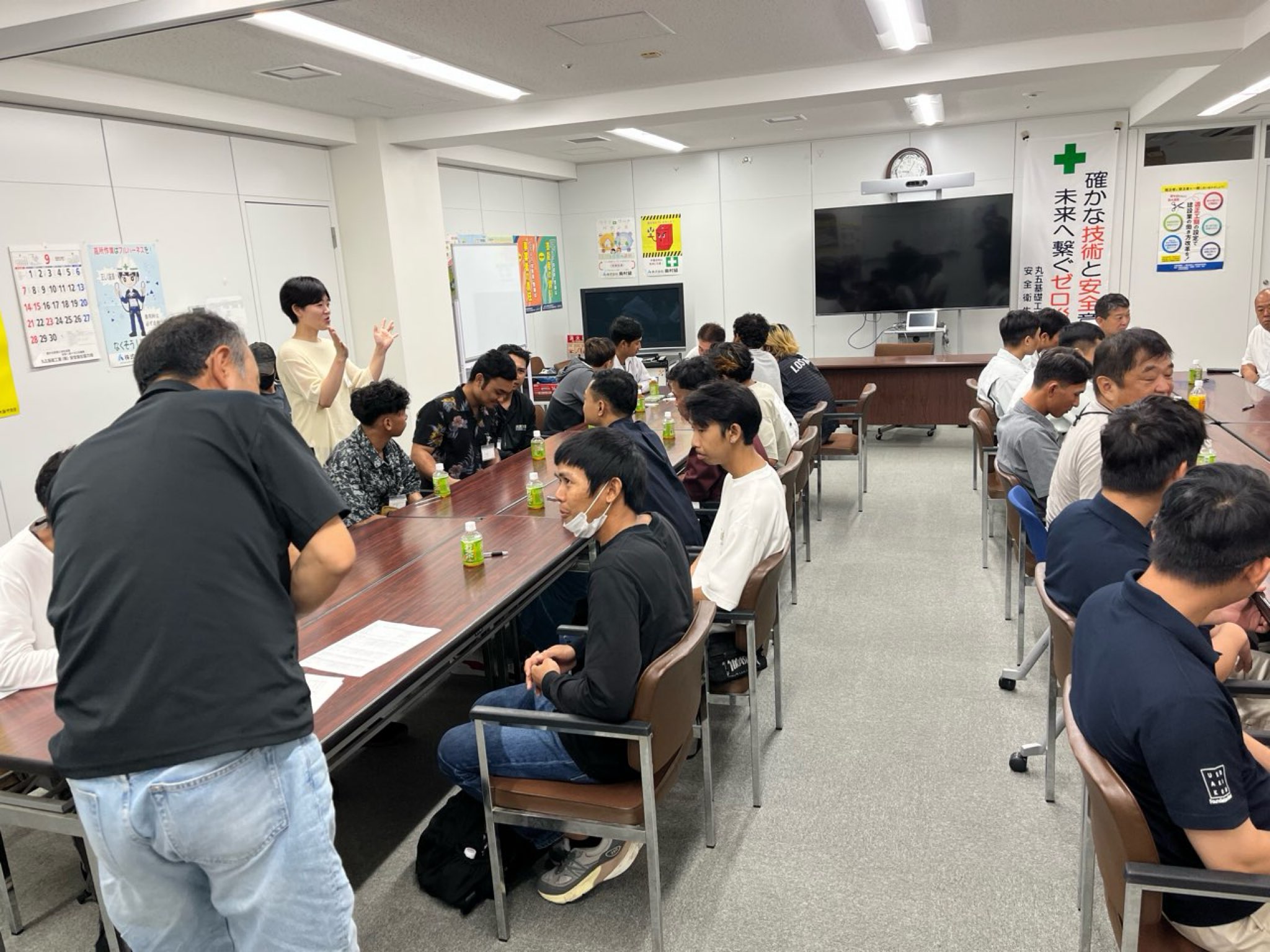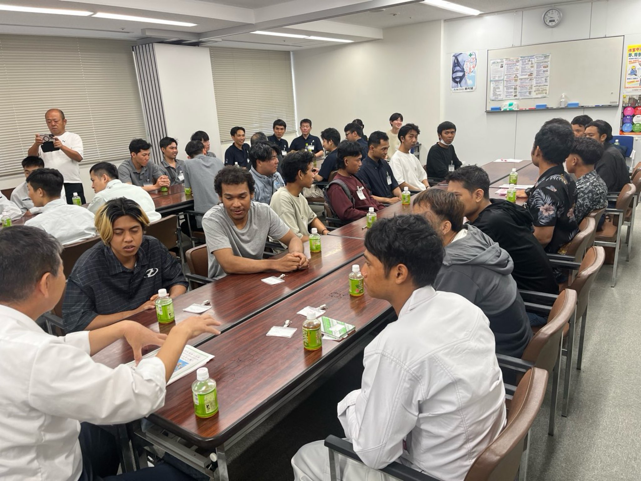 今回、お取引企業様が外国人就労者の安全教育を開催することとなり弊社の実習生8名も参加させて頂きました。今回は1回目でしたので、コミュニケーションを目的として日常会話を中心に約3時間行いました。大変有意義な講習会でした。知らず知らずのうちに不安全行動をとってしまうことがあるので、今回参加させて頂き、そのようなことが無くなるよう第2回も参加したいと思います。